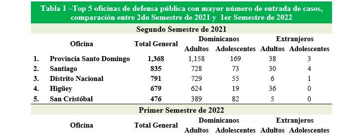Santo Domingo, Santiago, Distrito Nacional, Higüey, San Cristóbal y La Vega son las demarcaciones con mayor número de casos legales en manos de la Oficina Nacional de Defensa Pública alsegundo semestre del año 20221 y primer del 2022.