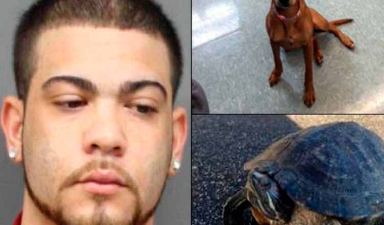 Rosa, de 24 años, fue arrestado y acusado en relación con el abandono del perro y la tortuga en condiciones deplorables.