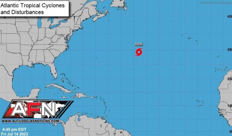 Don, la cuarta tormenta tropical de la actual temporada, presenta vientos máximos sostenidos de 50 millas por hora (85 km/h) y se ubica a 1.165 millas (1.875 km) al oeste-suroeste de las islas Azores.