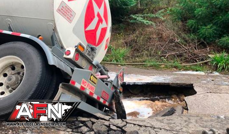El desplome de la capa asfáltica del tramo provocó que el vehículo pesado quedara atascado y se registrara un derrame de combustible. No hay personas heridas.