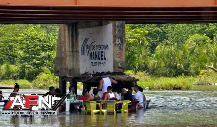 Los videos abundan en las redes sociales en los cuales se observa a personas con sillas y mesas plásticas dentro del río, tomando bebidas alcohólicas, fumando vapes y escuchando música, mientras otros se refrescan bañándose.