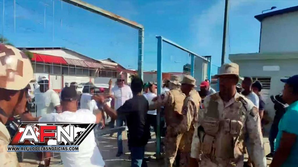 DEJABÓN.- Debido al impedimento de la entrada al mercado fronterizo de Dajabón por parte de miembros del Cuerpo Especializado en Seguridad Fronteriza Terrestre (Cesfront) a comerciantes dominicanos, se registró un forcejeo en la puerta, logrando los negociantes burlar la seguridad para concentrarse en el área comercial.