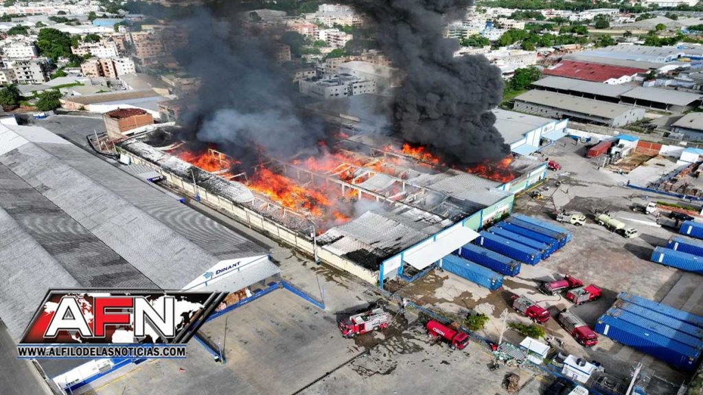Se registra incendio en una nave industrial en la autopista Duarte