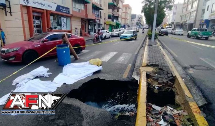 Santiago.- Un nuevo hundimiento de tierra se registró en la avenida Las Carreras en Santiago de los Caballeros, específicamente en la intersección que forma dicha vía de comunicación terrestre con la calle Cuba.
