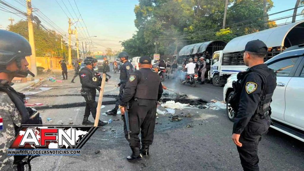 Santiago.- Desde tempranas horas de este lunes se producen enfrentamientos a tiros entre agentes de la Policía Nacional y manifestantes en comunidades de Licey al Medio, en la provincia Santiago, en el inicio de un paro laboral por 48 horas, convocado por grupos populares en demanda de obras sociales.