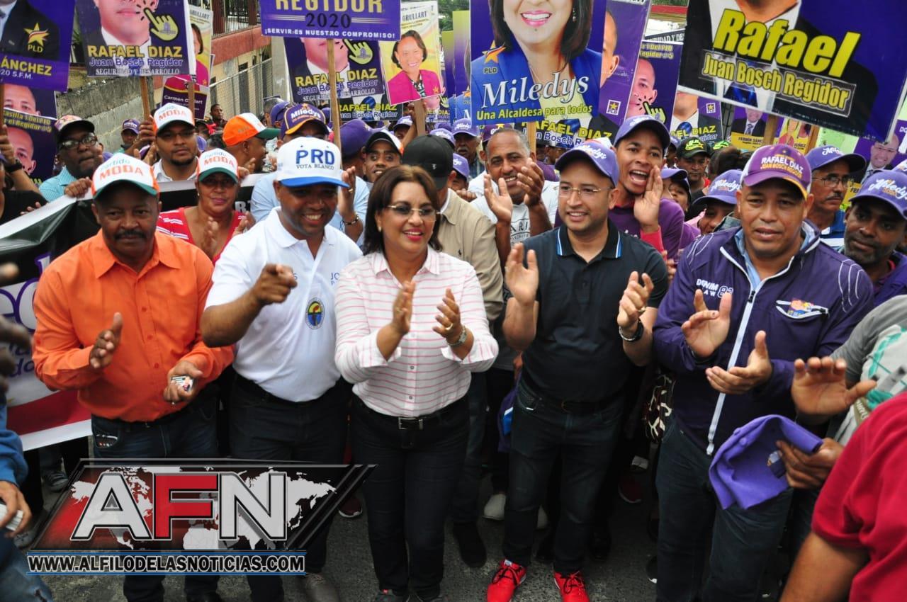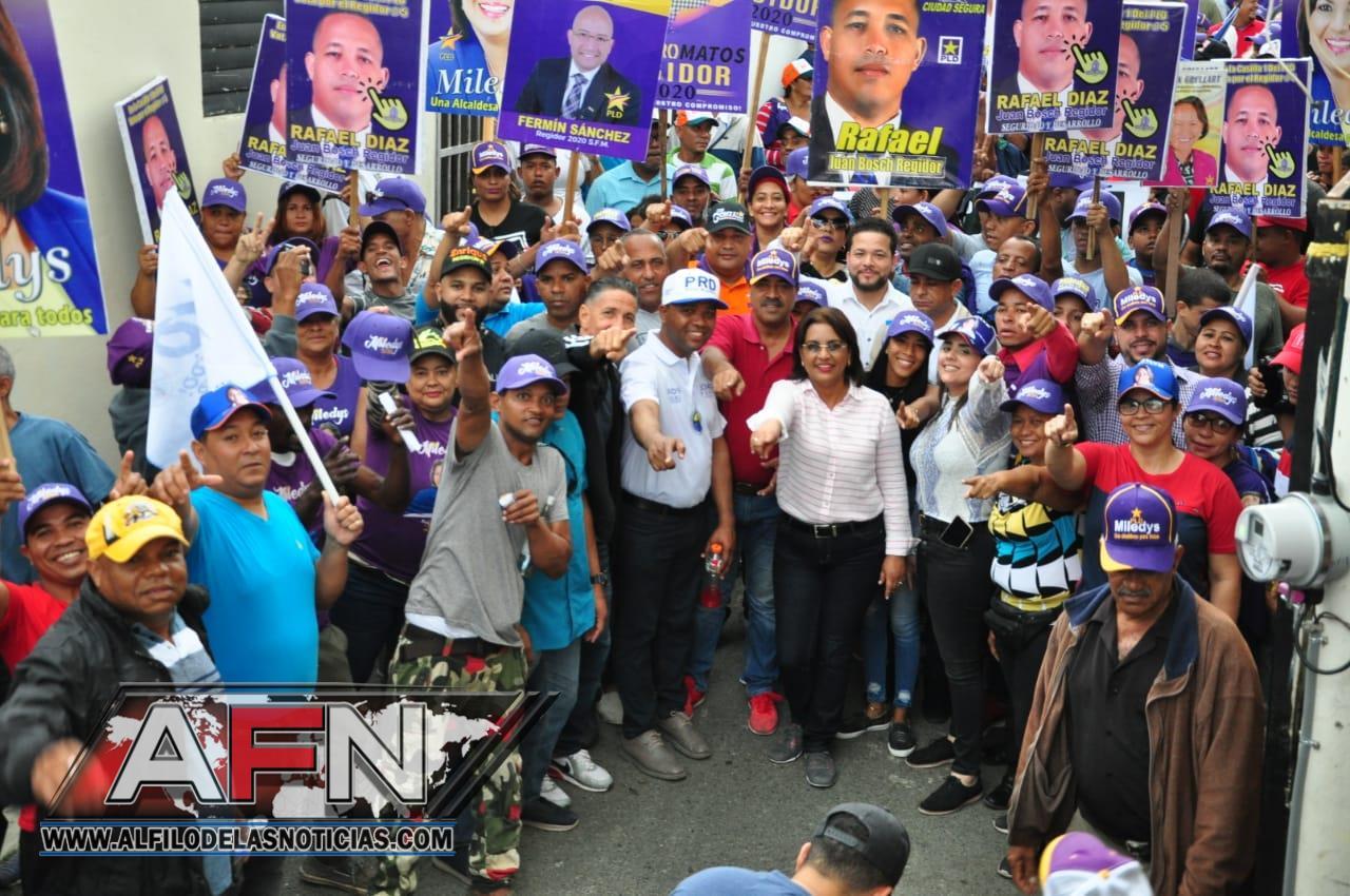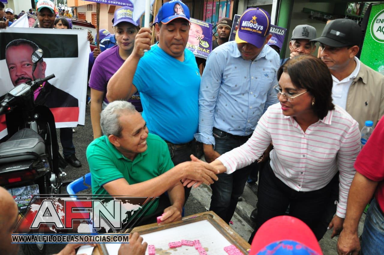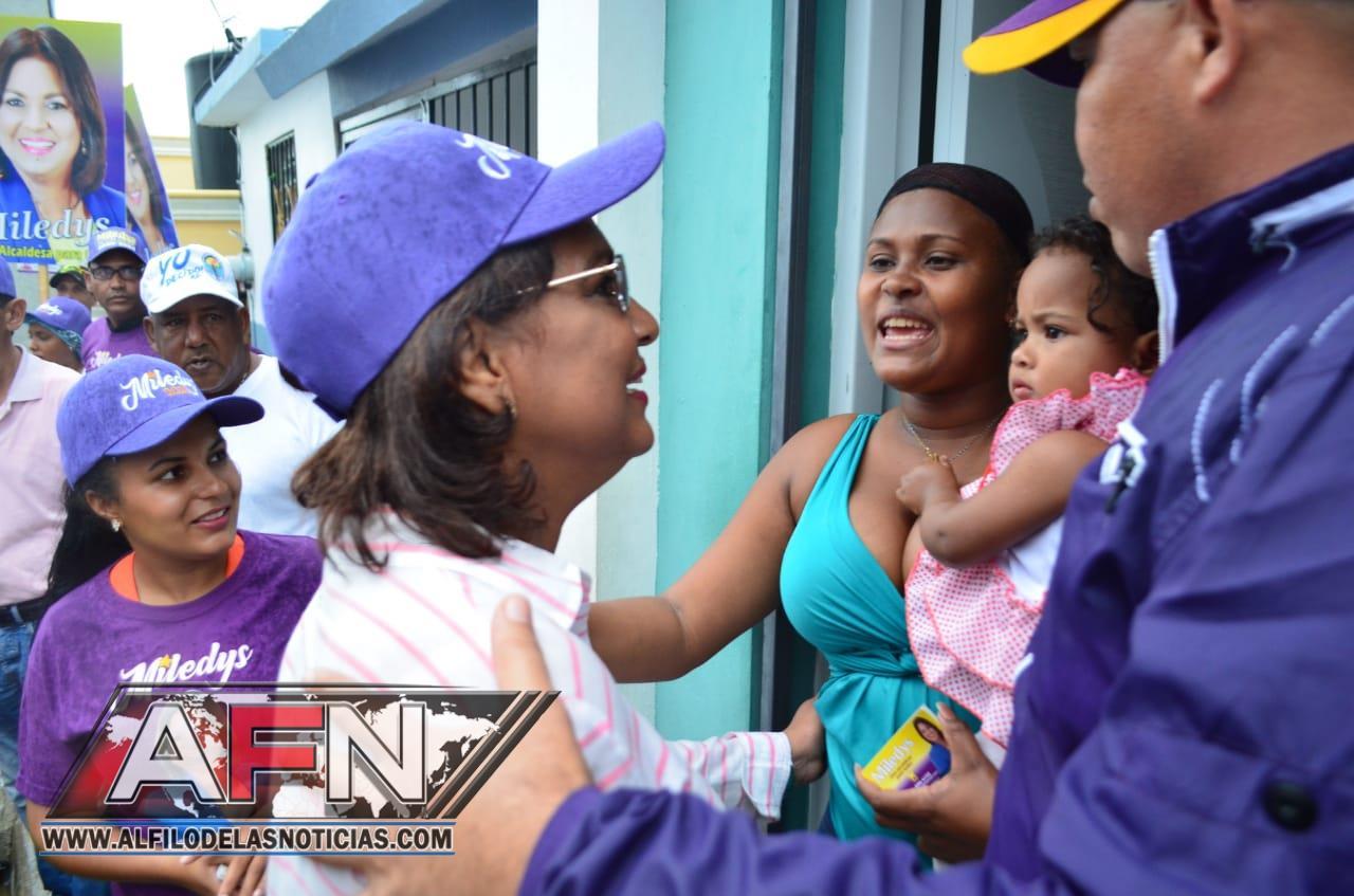 SAN FRANCISCO DE MACORÍS. – Moradores de los Sectores de la zona norte de la ciudad, acogieron a la candidata a la alcaldía por el Partido de la Liberación Dominicana Miledys Núñez, en un amplio recorrido.