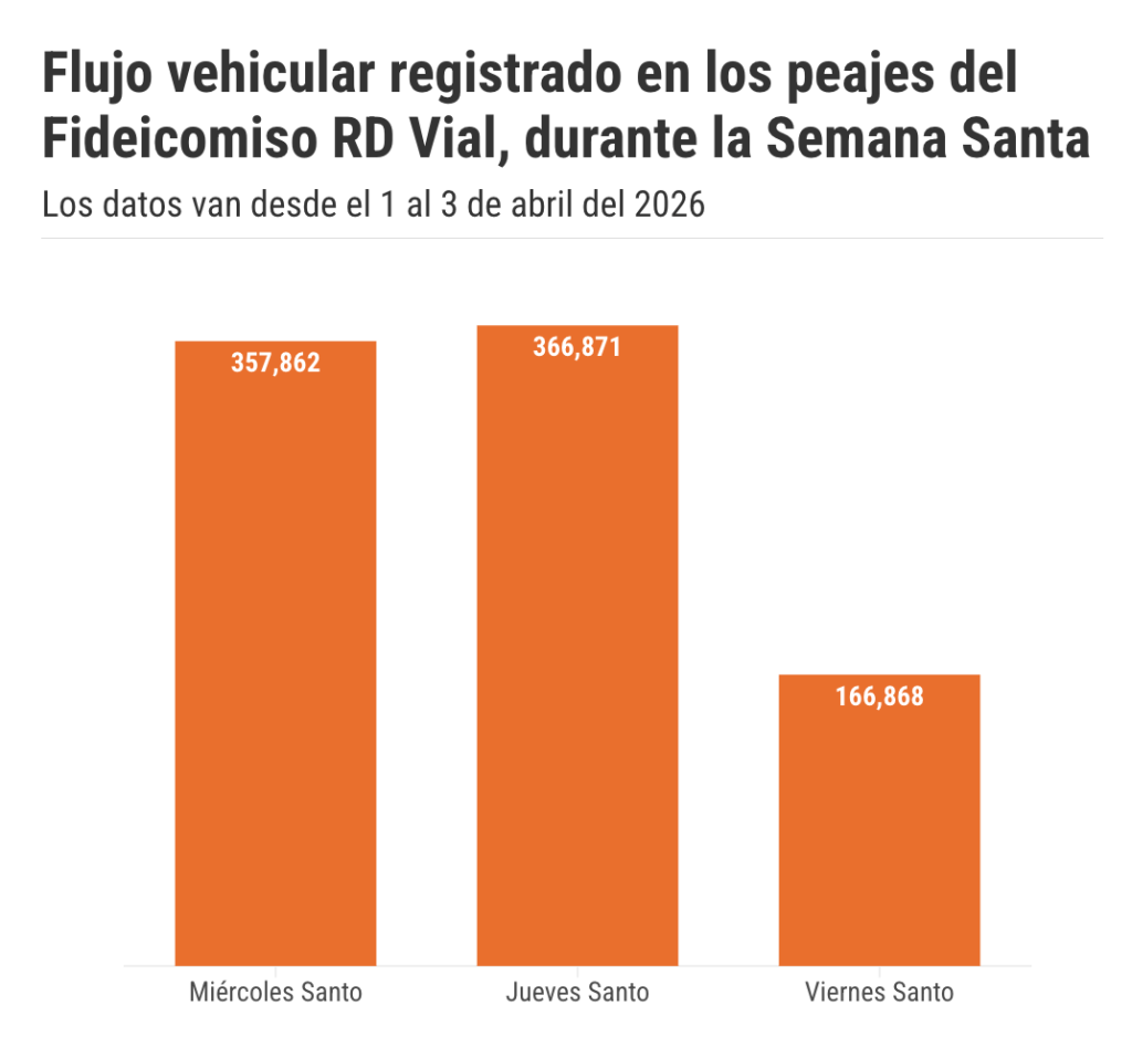 SANTO DOMINGO.- El Gobierno informó este sábado que la Semana Santa 2026 ha registrado el mayor flujo vehicular en la historia de los peajes administrados por el Fideicomiso RD Vial.