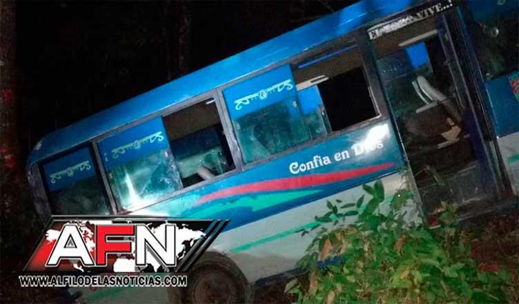 BAYAGUANA. -Un autobús en el que viajaban alrededor de 30 pasajeros se accidentó la noche de este viernes resultando siete personas heridas, en un hecho registrado en la carretera Mata Santiago del municipio de Bayaguana, provincia Monte Plata.