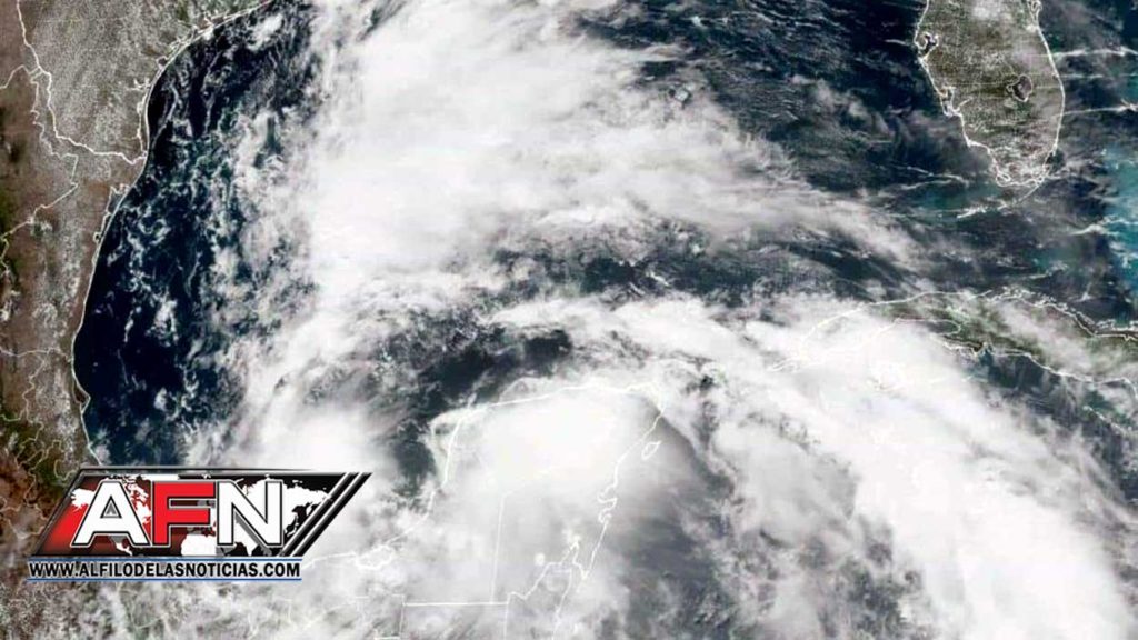 El Centro Nacional de Huracanes de Estado Unidos indica este lunes que esta amplia área de baja presión se encuentra sobre la Bahía de Campeche con vientos de 56 a 64 kilómetros por hora ocurriendo en un área bien al noreste del centro sobre el sur del Golfo de México.