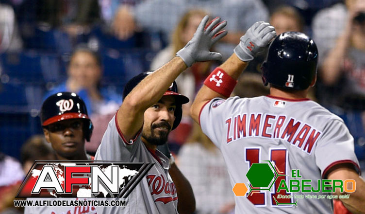 Ryan Zimmerman llegó a 12 vuelacercas y añadió un doblete para elevar su promedio de bateo a .433 con una actuación de tres imparables. Anthony Rendón también conectó jonrón y aportó tres hits, al igual que Jayson Werth por los Nacionales, que hilvanaron su tercer triunfo y gozan del mejor registro de Grandes Ligas con 20-9.