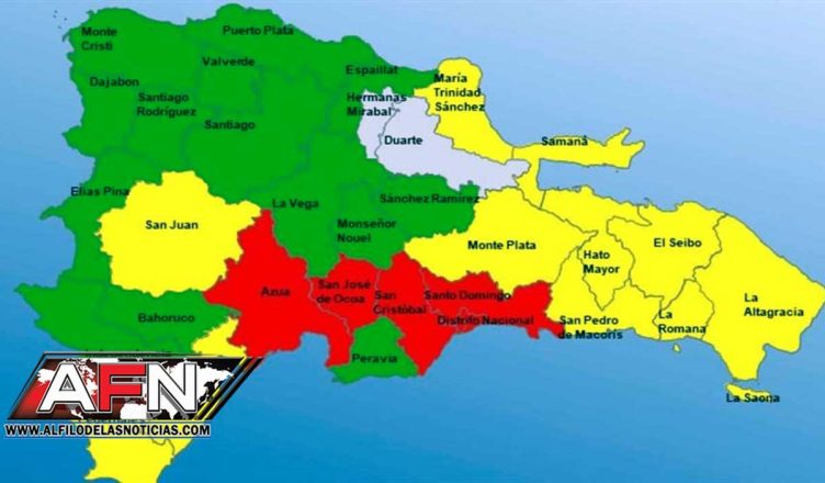En tanto, el organismo mantiene en alerta roja el Distrito Nacional, Santo Domingo, San José de Ocoa, San Cristóbal y Azua.