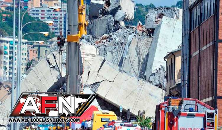El derrumbe de un tramo de 80 metros (260 pies) del puente Morandi hizo que docenas de autos y tres camiones pesados cayeran al vacío desde una altura de 45 metros (150 pies) mientras muchas familias se echaban a la carretera para el popular Ferragosto, como se conoce en Italia al feriado del 15 de agosto. El incidente se produjo en medio de una violenta tormenta.