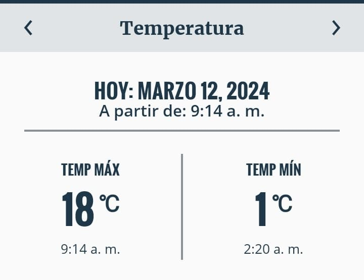 En tanto que a media mañana de hoy se estaba registrando una temperatura máxima de 27 °C y una sensación térmica de 34 °C.
