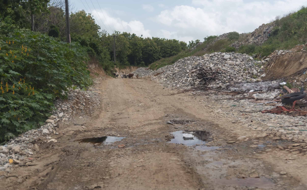 En todo el trayecto, desde el batey Duquesa hasta la entrada principal del botadero, hay pilas de granzote, que por las plantas que les han crecido encima y el aspecto de las piedras, se nota que tienen mucho tiempo sin ser removidas.