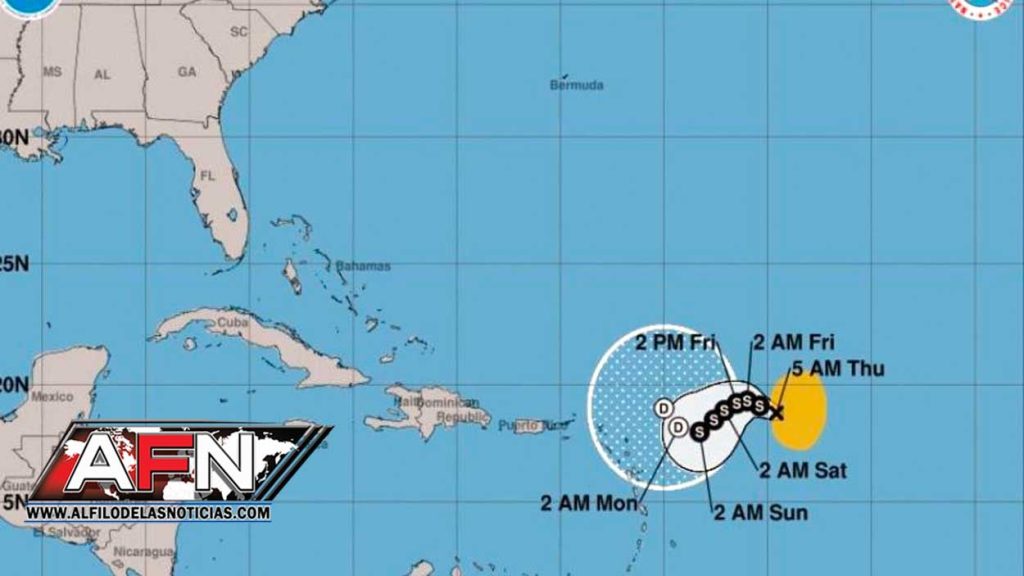 «Lo que se prevé es que el sistema tropical se quede ya como depresión tropical al noreste de las islas vírgenes norteamericanas. Lo que se prevé es que aparentemente no va a llegar a nuestra zona de una manera directa», indicó Amparo.