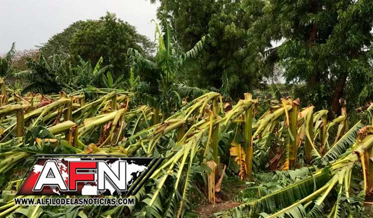 De acuerdo a reportes preliminares, los fenómenos destruyeron plantaciones de plátano en las localidades de Río Viejo, La Reforma y Cana.