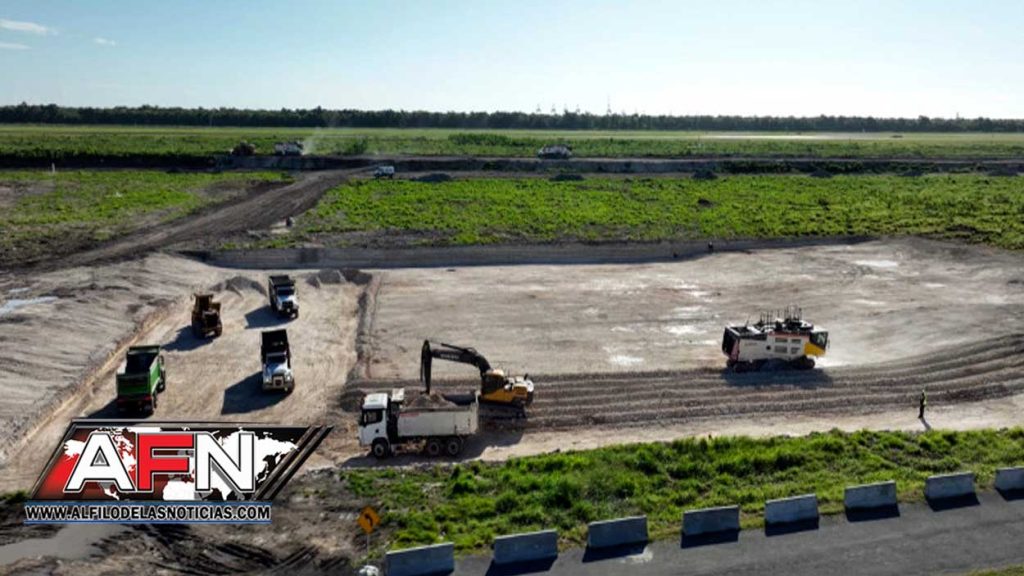 Explicaron que, en paralelo, avanzan los movimientos de tierra para la calle de rodaje, y está en curso la instalación de tuberías de drenaje para la futura plataforma, tras la llegada de los materiales al sitio.