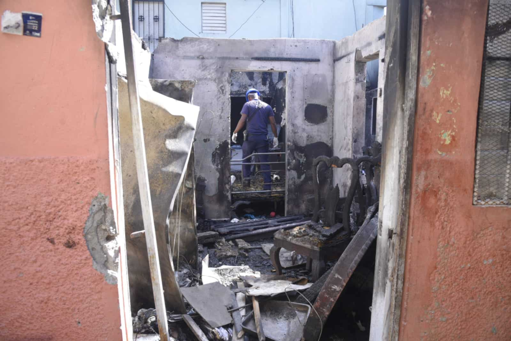 Las puertas estaban cerradas. Pero los vecinos lograron derribar la puerta. Trataron de lanzar cubetas de agua y arena para contrarrestar el avance de las llamas. Acusan además que las unidades del Cuerpo de Bomberos del Distrito Nacional, llegaron alrededor de media hora después de la denuncia, indicaron los vecinos.
