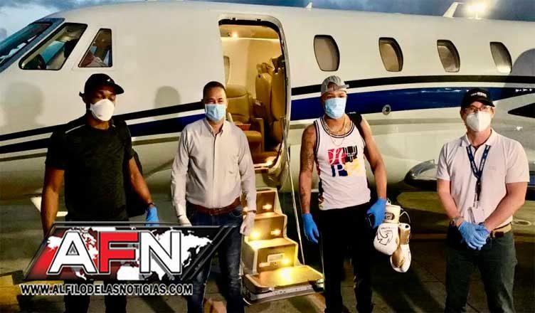 Ambos púgiles estaban varados en la ciudad de Miami desde hacía más de un mes debido a la pandemia del coronavirus y fueron recibidos en el Aeropuerto Internacional Joaquín Balaguer, de El Higüero, por Diego Prida, director de Operaciones de dicha compañía.