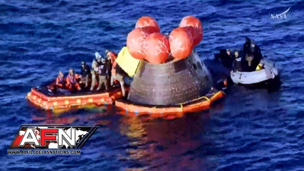 Su cápsula Orion realizó un amerizaje suave, a 30 kilómetros por hora, en el océano Pacífico, frente a la costa de San Diego, gracias a enormes paracaídas, a las 17:07 hora local (00:07 GMT del sábado), exactamente como lo había planeado la agencia espacial estadounidense.