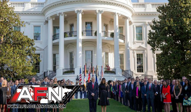 Antes de visitar el Pentágono, Trump y su esposa encabezaron un momento de silencio en los jardines del ala sur de la Casa Blanca en recuerdo de las víctimas del 11S.