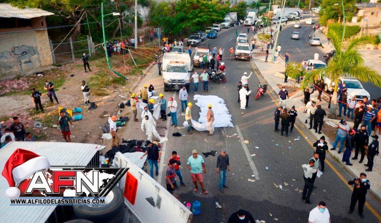 El tráiler donde viajaban los migrantes indocumentados chocó con la pared del muro de un puente peatonal, según el reporte de la Fiscalía de Chiapas.