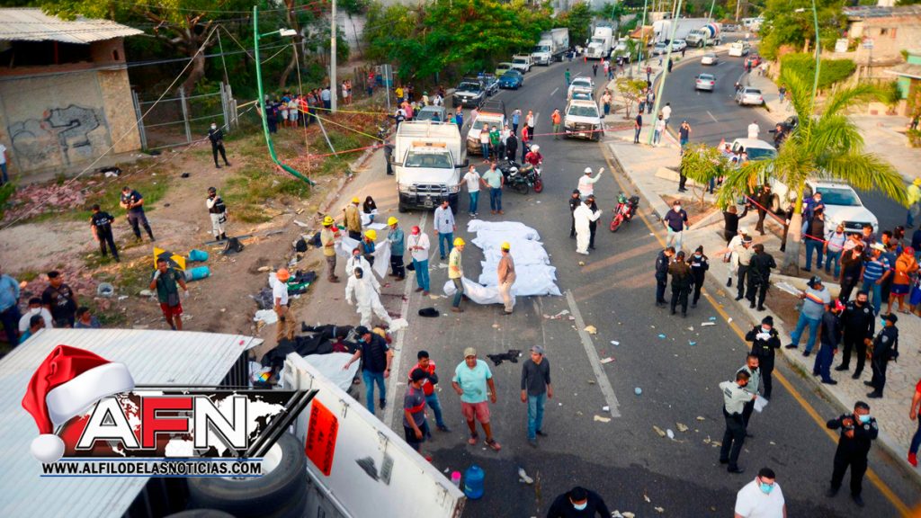El tráiler donde viajaban los migrantes indocumentados chocó con la pared del muro de un puente peatonal, según el reporte de la Fiscalía de Chiapas.