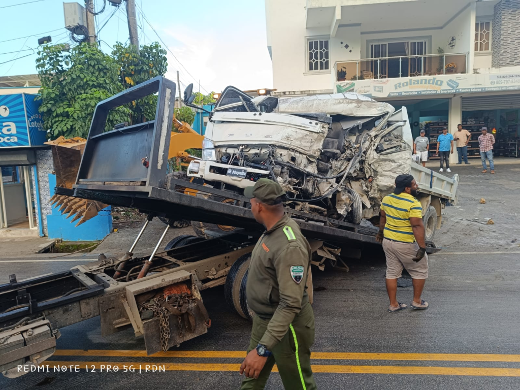 SAMANÁ.- Una persona falleció y otro está gravemente herida tras un accidente de tránsito entre dos camiones que chocaron, en Las Garitas del municipio de Sánchez, provincia Samaná.