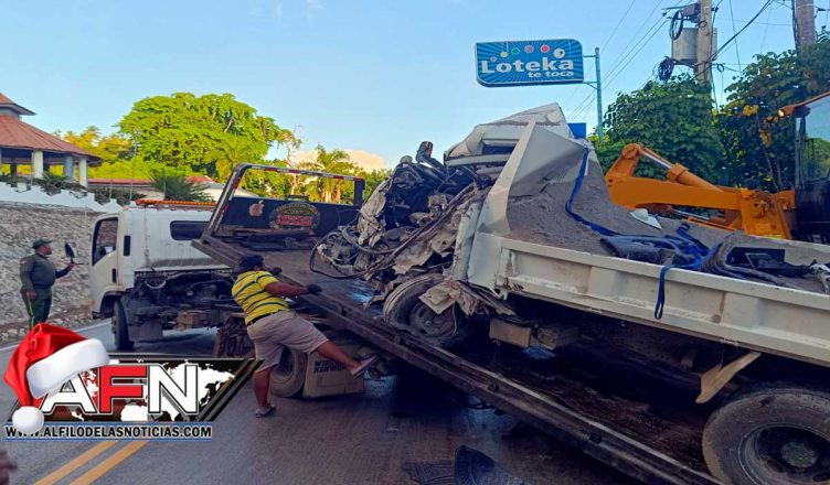 SAMANÁ.- Una persona falleció y otro está gravemente herida tras un accidente de tránsito entre dos camiones que chocaron, en Las Garitas del municipio de Sánchez, provincia Samaná.