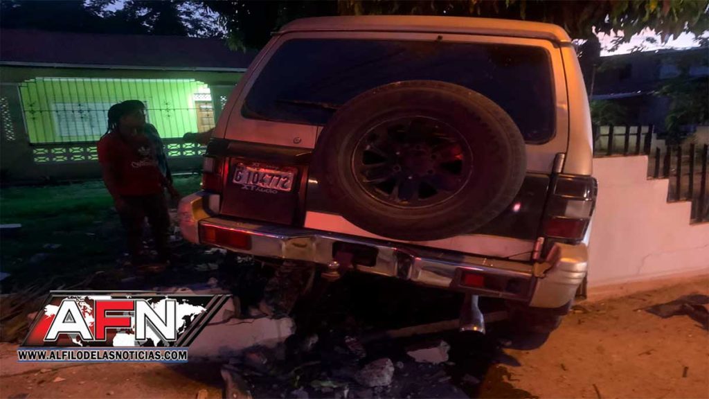 El referido accidente de tránsito se registró en la carretera Puerto Plata-Navarrete y debido al impacto del choque, la yipeta Mitsubishi Montero, placa No. G104772, se metió a la parte frontal de una residencia, según reportó el comunicador Cosme Ulloa (Yankee).