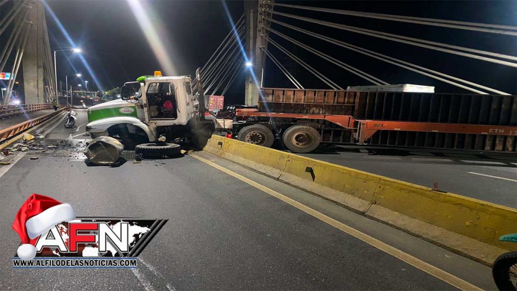 SANTO DOMINGO. – Una patana se accidentó la madrugada de este miércoles al impactar con el muro de contención del puente Juan Bosch, lo que provocó que se volcara su furgón.