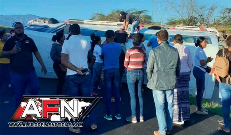 SANTO DOMINGO.- Varias personas resultaron heridas la mañana de este viernes al precipitarse por una cuneta un autobús de transporte público próximo a la comunidad de Tabara Abajo, en Azua.