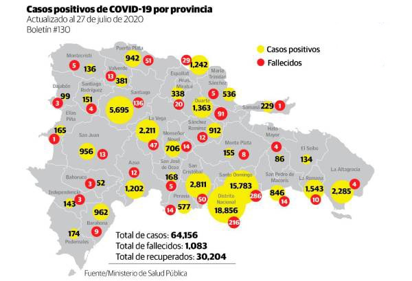 Los casos activos de COVID-19 son 32,869, mientras que los recuperados son 30,204, informó el ministro de Salud Pública, Rafael Sánchez Cárdenas, al leer el boletín 130 sobre las incidencias del nuevo coronavirus en el República Dominicana.