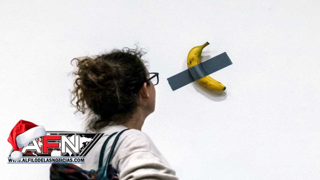 NEW YORK.- Una obra de arte conceptual que consiste en una banana adherida a una pared con cinta adhesiva se vendió por 6,2 millones de dólares el miércoles en una subasta en Nueva York.