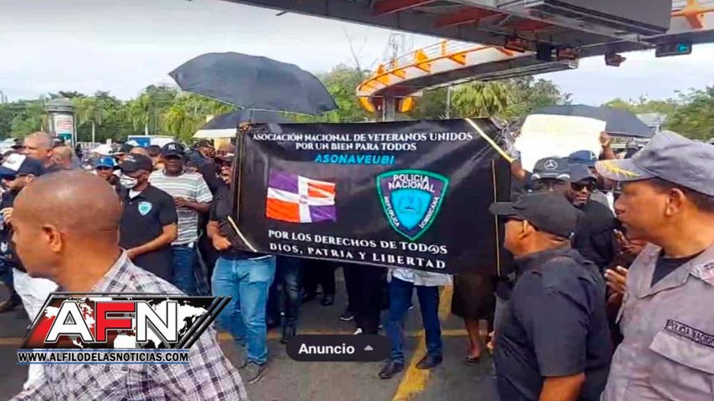 SANTO DOMINGO.- Miembros de la Asociación Nacional de Veteranos Unidos por un Bien para Todos se apostaron la mañana de este lunes en las inmediaciones de la avenida 27 de Febrero esquina Máximo Gómez para exigir indemnización, mejoras salariales y en el seguro de salud.