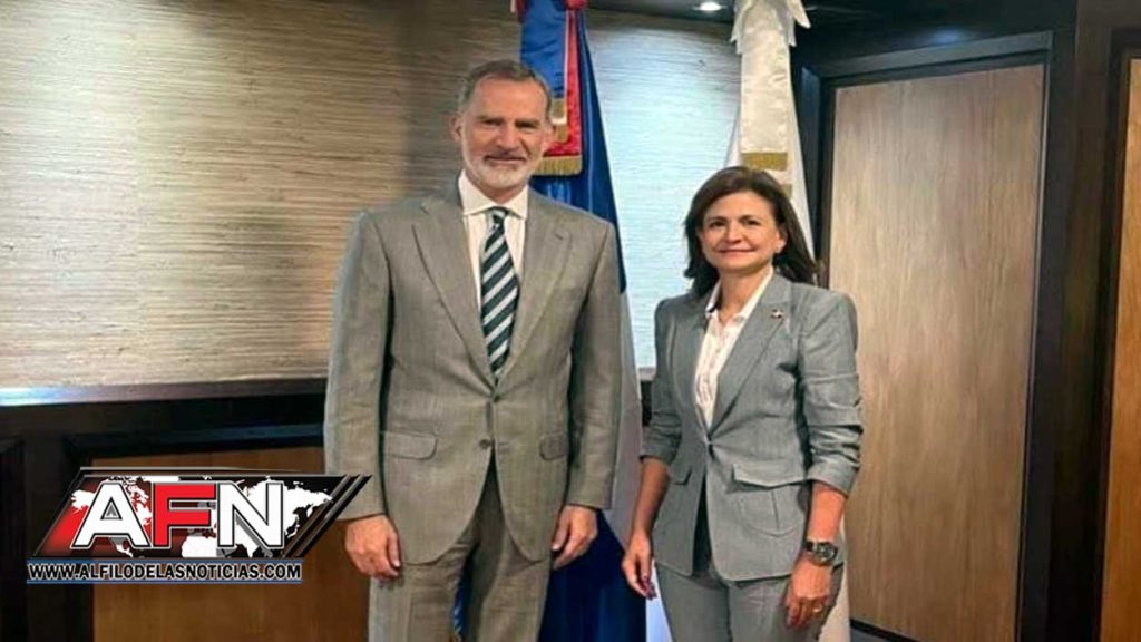 SANTO DOMINGO.- La vicepresidenta Raquel Peña recibió este viernes al rey de España Felipe VI, quien realizó una corta escala en República Dominicana en su ruta a El Salvador, donde asistirá a la toma de posesión de Nayib Bukele