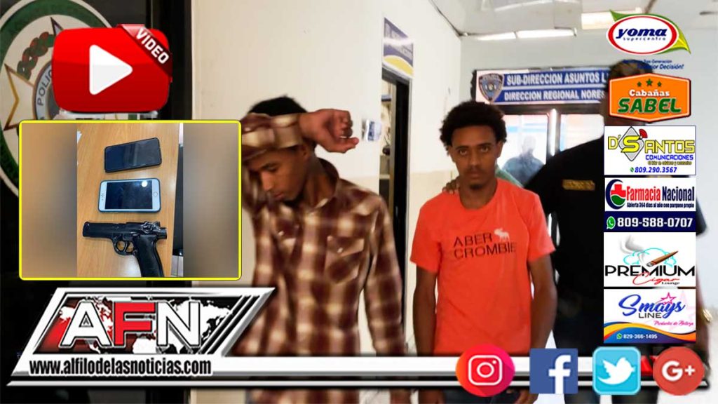 SAN FRANCISCO DE MACORÍS. – Agentes policiales apresaron en flagrante delito a dos jóvenes acusados de cometer un atraco armados con un arma de juguete en esta ciudad.