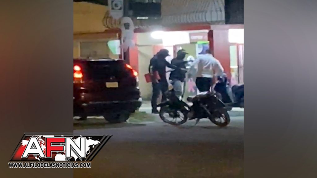 La Policía dice que trabaja en identificar y capturar a los asaltantes que, según un video abandonaron el establecimiento, luego de darle un pecozón a un hombre, en una yipeta roja.