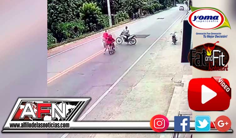 VILLA RIVA.- Una de las cámaras de vigilancia de un centro comercial captó este domingo el momento en que dos motocicletas colisionaron, en la carretera Nagua-San Francisco, específicamente en la comunidad El Bombillo del municipio Villa Riva.