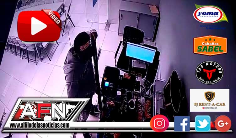 En las imágenes se puede apreciar como el sujeto apunta con el arma a la fémina y le facilita una bolsa para que coloque el dinero dentro.