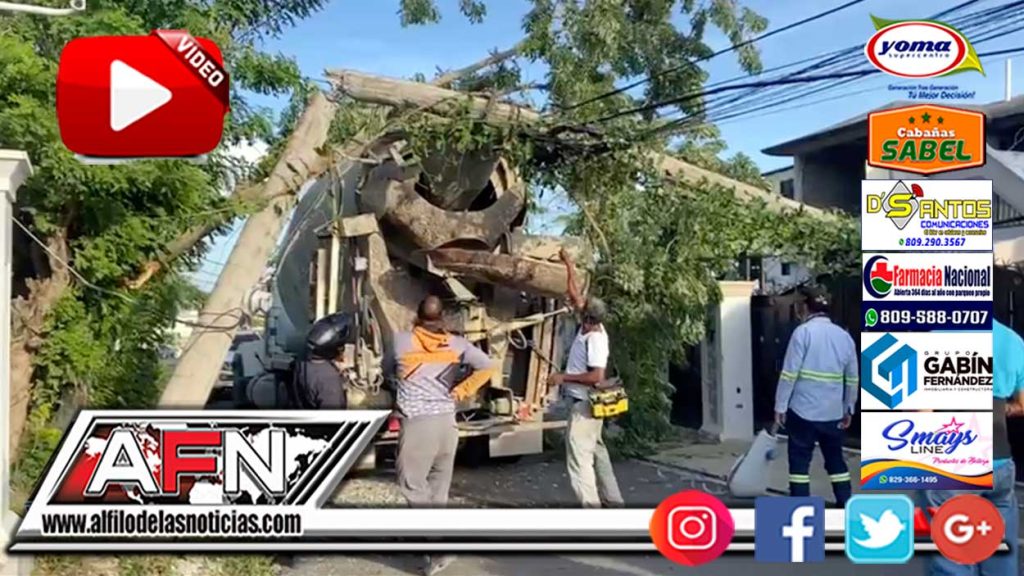 (VIDEO) Camión derriba poste del tendido eléctrico en el sector Los Webers de SFM