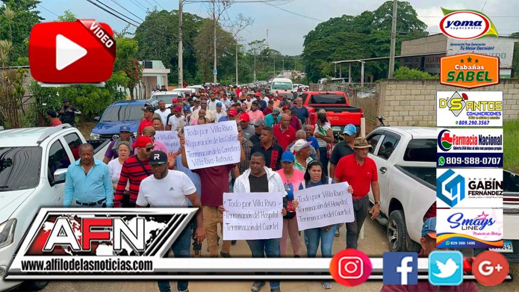 VILLA RIVA.- Decenas de comunitarios del municipio Villa Riva desafiaron la lluvia y marcharon este lunes en demanda de la construcción de las calles, terminación del hospital y el destacamento policial, así como la construcción de la carretera Villa Riva-Autovía del Nordeste y Majagual-Loma Colorada, entre otras reivindicaciones.
