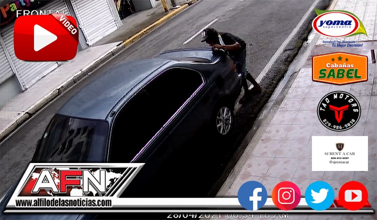 SAN FRANCISCO DE MACORIS. – No sabemos si reírnos o llorar, pero hasta nuestra redacción llega un vídeo de una cámara de seguridad que captó el momento en que un hombre despega la visera de un carro con los dientes.