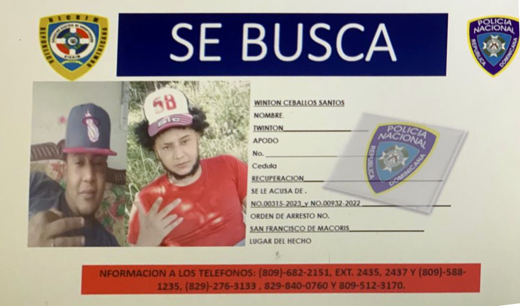 A Ceballos Santana se le ocupó un revólver calibre 38, al momento de la detención, quien además presenta dos órdenes de arresto en su contra.