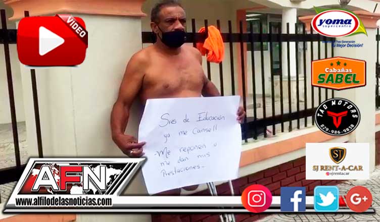 San Francisco de Macorís. – Un hombre discapacitado, con pancarta ten mano se desnudó frente a las oficinas de la regional nordeste de educación, con la intención de llamar la atención para el reclamo de sus prestaciones laborales.