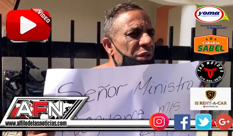 Alejandro Alcántara, quien portaba un cartel que rezaba «señor ministro paguen mis prestaciones, ya no aguanto más», explicó que esta protestando de esa forma porque no aguanta las deudas.