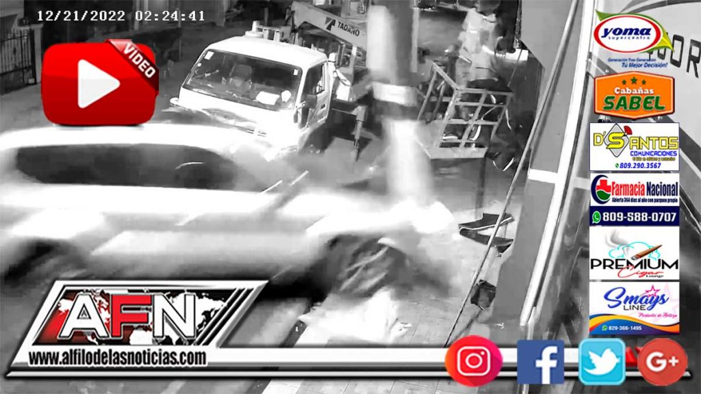 San Francisco De Macoris.- Dos jóvenes que laboraban en la colocación de un letrero a bordo de una grúa, resultaron heridos tras una Jeepeta impactar la misma, en un hecho ocurrido la madrugada del miércoles, en la calle Salcedo de esta ciudad.