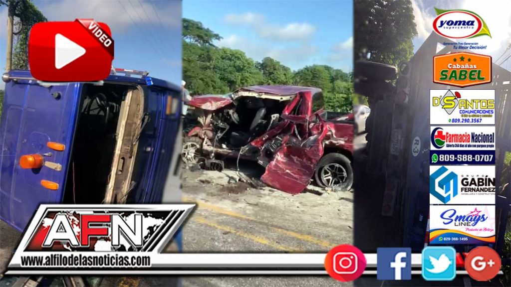 (VIDEO) Dos personas heridas al chocar camioneta con un camión en carretera SFM – Nagua