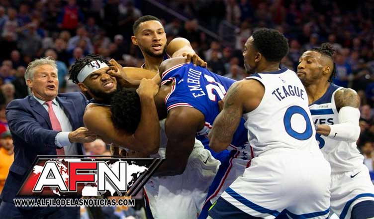 Ben Simmons intervino y contuvo a Towns con fuerza mientras otros jugadores y entrenadores corrían hacia la cancha para separar a todos. Embiid y Towns fueron expulsados.