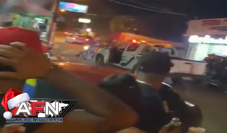 Según se puede apreciar en el audiovisual, el encartado que abordaba la patrulla, se zafó de la policía al acelerar el vehículo de forma temeraria, metros mas adelante, atropella una persona que se trasportaba en una motocicleta y luego impacta a otros vehículo que estaban estacionados en el lugar.